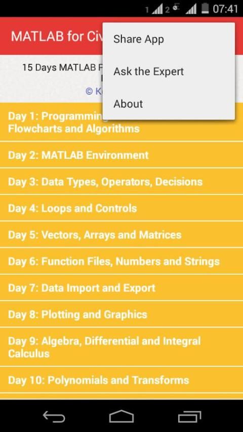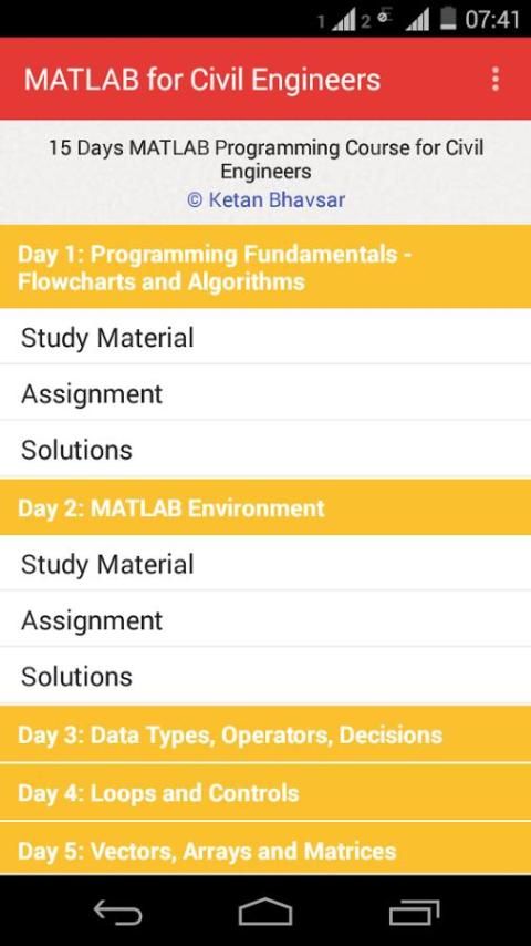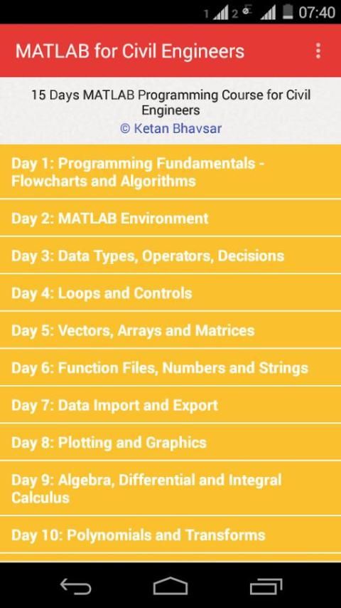 The App is based on the 15 Days Course Curriculum by TechArte Learning, developed to train Civil Engineering Faculty/Students, in MATLAB Programming and its applications.