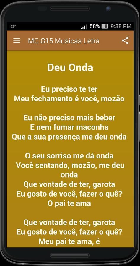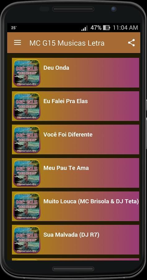 9Apps представляет бесплатные загрузки apk приложений для андроид. 20,000+ пользователи скачали последнюю версию MC G15 Musicas Letra в 9Apps бесплатно каждую неделю! Вы будете нашли, что многие пользуются им. Это горячее приложение было выпущено в 2017-01-27. Если вы хотите получить его, просто скачиваете его без сомнения и проводите весёлое время с ним.