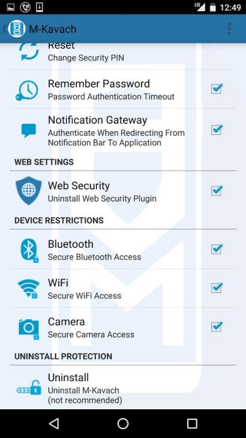 M-Кавач представляет собой комплексное решение мобильной безопасности устройства для Android устройств, охватывающих различные угрозы, связанные с мобильными телефонами. В нем рассматриваются угрозы, связанные с неправильным использованием ресурсов, таких как Wi-Fi, Bluetooth, камеры и мобильных данных