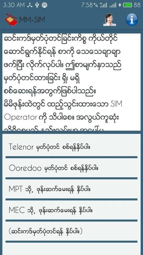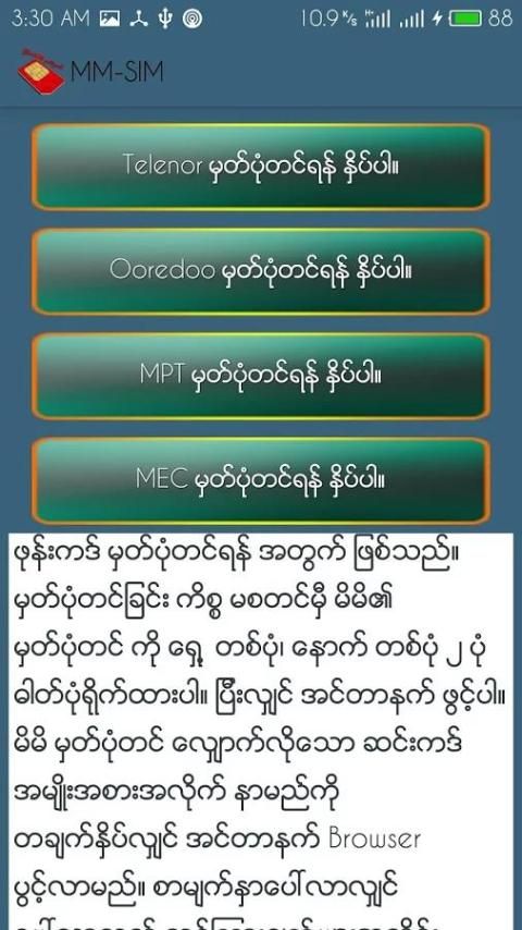 Применение ММ-SIM သည္ ျ မန္ မာ ျ ပည္ ရွိ (လက္ ရွိ) ေအာ ္ ပေ ရတာ အား လံုး အ တြက္