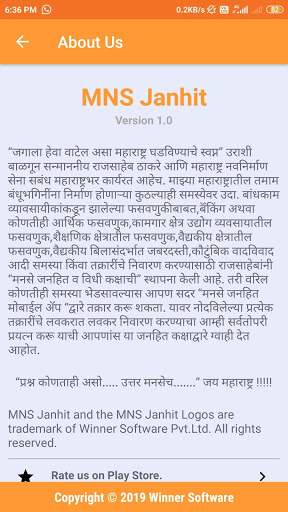 तरी वरिल कोणतीही समस्या भेडसावल्यास आपण सदर “मनसे जनहित मोबाईल ॲप(MNS Janhit - Complaints/Grievance Management System) “द्वारे तक्रार करू शकता. यावर नोदविलेल्या प्रत्येक तक्रारींचे लवकरात लवकर निवारण करण्याचा आम्ही सर्वतोपरी प्रयत्न करू याची आपणांस या जनहित कक्षाद्वारे ग्वाही देत आहोत.