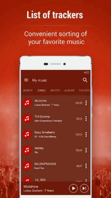 Это приложение содержит многие дополнительные функции, позволяющие слушать музыку как можно проще. Вы можете фильтровать и сортировать музыку, художник и название песни.