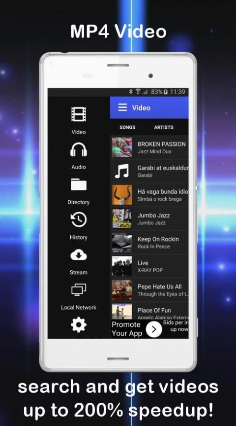 Наслаждайтесь лучшим музыкальным опытом в планшете или смартфоне. Поиск и получить клипы на устройстве быстрее с этим инструментом для mp4, скачать это бесплатно!