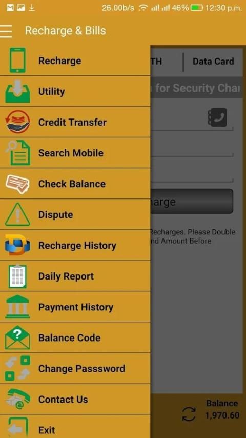 1. Зарядите предоплату, DTH, Специальная перезарядка, Datacard, Постоплатные и Utility Bill