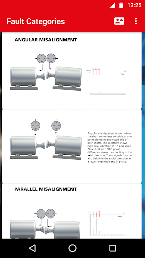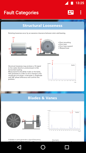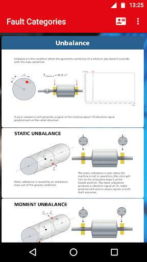 This app helps you diagnose and understand the various machinery faults such as rotor unbalance, misalignment, resonance, bearing damage, and more.