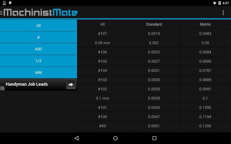 Ссылка - метрическая для стандартных преобразований гаечный ключ, когда вам нужен стандарт, но у вас есть только метрика, он показывает, как близки по размерам они друг к другу. Кроме того, в справочном разделе является дрель график; в комплекте с wiregauge, стандартных, метрических и буквенных размеров.