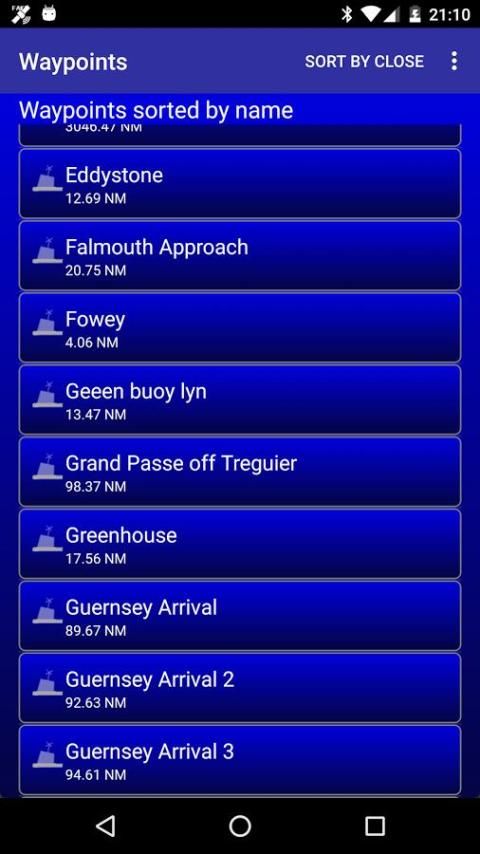 • Просмотр путевых точек в алфавитном порядке по по расстоянию от вашего текущего положения.