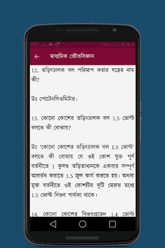 মাধ্যমিক ভৌতবিজ্ঞান (Madhyamik Physical Science) অ্যাপটি পশ্চিমবঙ্গের মাধ্যমিক সিলেবাসে থাকা বিষয়গুলির প্রশ্নোত্তর নিয়ে গঠিত। এই অ্যাপটিতে পাঠ্যসূচির বিভিন্ন বিষয়গুলির খুঁটিনাটি প্রশ্নোত্তর অত্যন্ত যত্নসহকারে পরিবেশন করা হয়েছে। আশা করা যায় মাধ্যমিক ভৌতবিজ্ঞান অ্যাপটি মাধ্যমিক ছাত্র-ছাত্রীদের ভীষণভাবে সাহায্য করবে তাদের আগামী মাধ্যমিক পরীক্ষার ভৌতবিজ্ঞান বিষয়টি প্রস্তুতির জন্য। শুধু মাধ্যমিক পরীক্ষার্থী নয়, মাধ্যমিক ভৌতবিজ্ঞান (Madhyamik Physical Science) অ্যাপটি বিভিন্ন প্রতিযোগিতামূলক পরীক্ষা যেমন- পি এস সি, এস এস সি, ডব্লু বি সি এস, ইউ পি এস সি, সি জি এল, টেট, সি টেট, গ্রুপ সি, গ্রুপ ডি, নেট, সেট, বিভিন্ন স্কুল-কলেজের পরীক্ষা প্রভৃতির প্রস্তুতির জন্য পরীক্ষার্থীদের খুবই কাজে আসবে। সর্বোপরি মাধ্যমিক ভৌতবিজ্ঞান (Madhyamik Physical Science) অ্যাপটি এর ব্যবহারকারীদের উপকারে এলে আমাদের পরিশ্রম সার্থক হয়েছে বলে মনে করব।