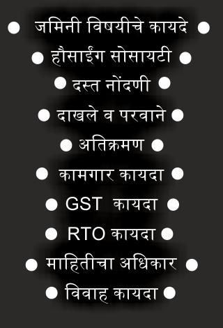 मराठी कायदे अँप मध्ये खालील कायदे समाविष्ठ आहे