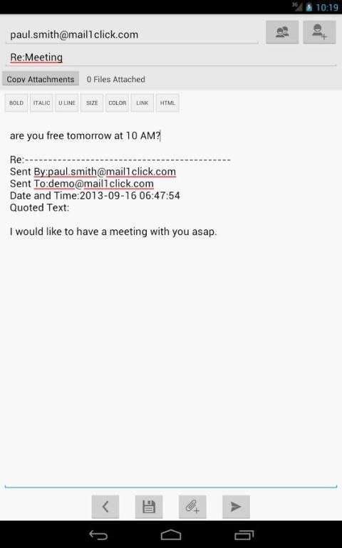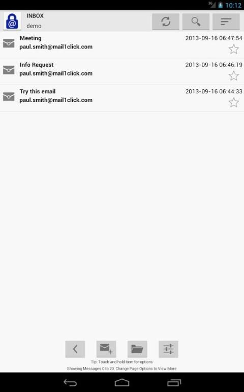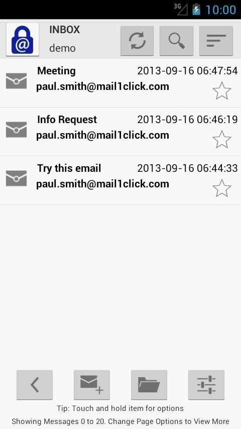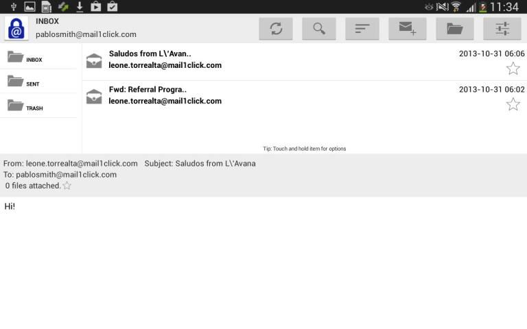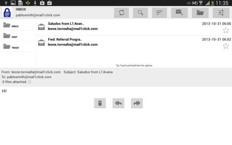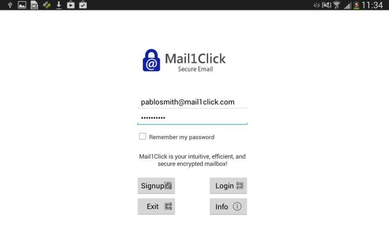 Вы можете получить доступ к почтовому ящику с помощью зашифрованных вашем Android смартфоне или через интерфейс веб-почты по адресу: https://www.mail1click.com