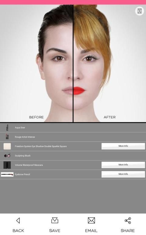 Это приложение использует новейшие технологии ModiFace на реалистичного моделирования блеск, блеск, текстуры, и интенсивностей косметических продуктов. Вы можете поделиться макияж, используя много приложений уже установлены на вашем устройстве. Итак, почему бы не попробовать это приложение сегодня и дайте нам знать, что вы думаете!