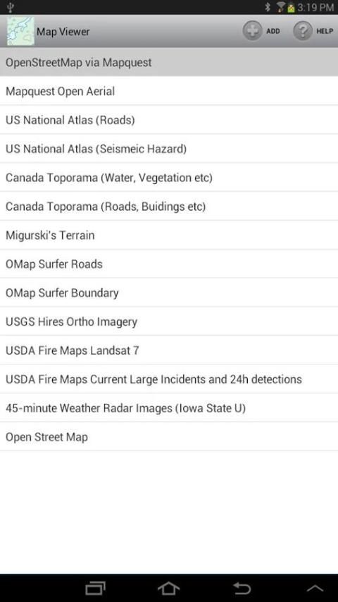 Map Viewer allows you to explore a variety of maps available from servers located across the Internet. Interested in topographic maps? Political boundaries? Seismic hazards? Recent forest fire incidents? Weather? Just about anything you can think of is available on publicly accessible map servers and Map Viewer is a convenient way to see them. We provide you with a predefined list of map servers to get started. Simply click on the map of your choice and it will appear. You can then zoom in and explore as you would on the more well known Internet map services. We also provide you with the ability bookmark locations on these maps, and, if your device has a GPS, see your present location on the map of your choosing. There are many more maps available on the Internet than we have included in the predefined list. Most are too specialized or regional to be of general interest. With Map Viewer you can access these specialized map servers if you know their URLs. Map Viewer is compatible with most web based Slippery Tiles type map servers and Open Geospatial Consortium's (OGC) Web Map Service servers. (Slippery Tiles is a map format used for most Internet based maps with Open Street Maps being a well known example. OGC is often used by governmental organizations like Natural Resources Canada.) Further details on how to access these servers is provided in the help sections within the App.