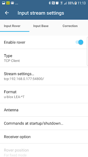 3. In Mapit go to settings->External GNSS and enable NTRIP Client