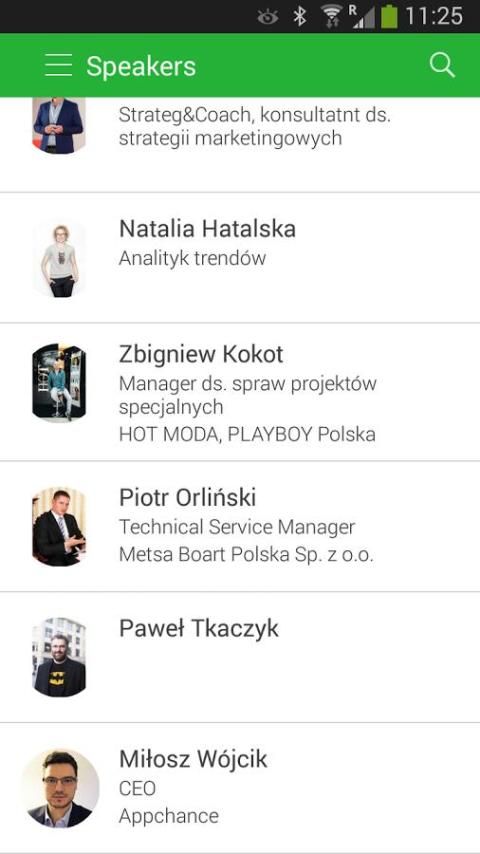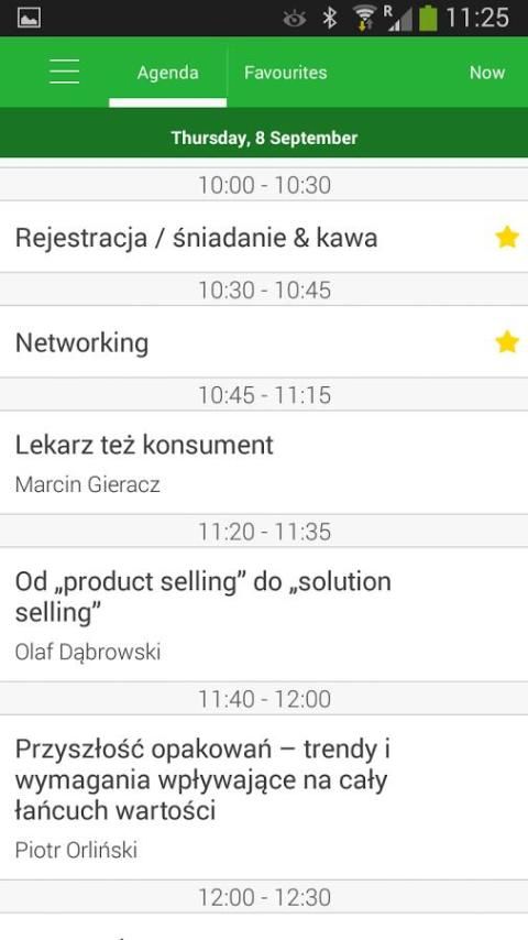 Повестка дня, информация о выступающих, которые, возможность отправлять личные сообщения зарегистрированным пользователям, загружать фотографии в приложение, организации частных встреч.