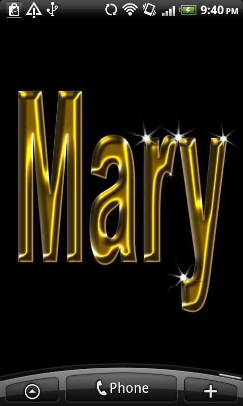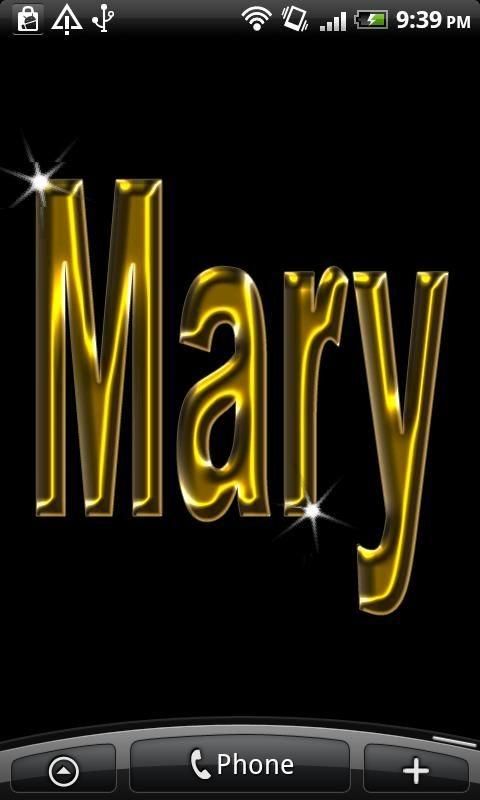 Mary Gold Name This is a live wallpaper with the name MARY in sparkling gold! Do you want YOUR NAME like this? Check out our web site - www.andbling.com - under category 'Golden Names' and see if your name is already available. If not, send an e-mail to support@andbling.com and we will add it to the Market! TO USE: Home->Menu->Wallpapers->LiveWallpapers. &Bling;: Your virtual mobile jewelry store