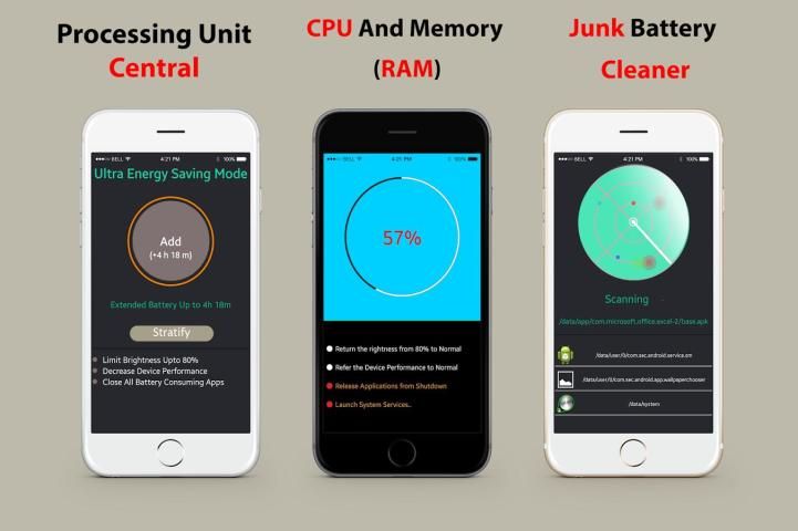 - Следуйте RAM, место для хранения и температуры процессора / батареи. Супер очиститель.