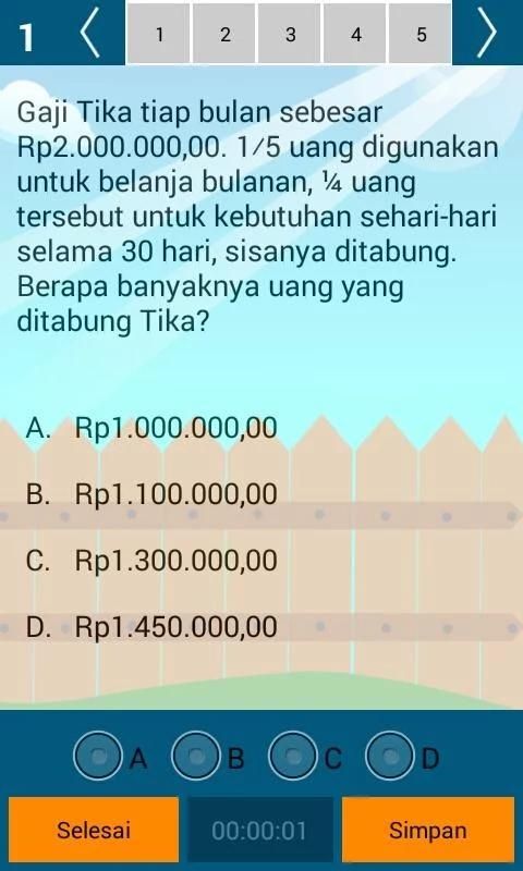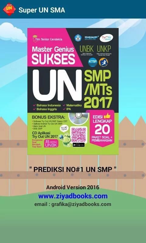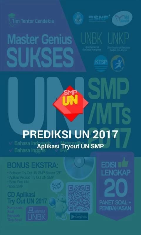 Это приложение представляет собой моделирование Попробуйте для национальной экспертизы 2017 года SMP / МЦ с UNBK системы (Computer-Based национальный экзамен). Содержит вопросы SMP ООН / МЦ индонезийца, английского, математики и естественных наук. Есть 3 пакета около быть рандомизированы каждую перевязочного сессию, сроки дела, составы команд значение и ключевой ответ в конце сессии. Будем надеяться, что приложение для Android, студенты могут практиковать более делать упражнения, чтобы они могли работать по проблемам ООН SMP / МЦ в 2017 году с отличным соотношением цена!