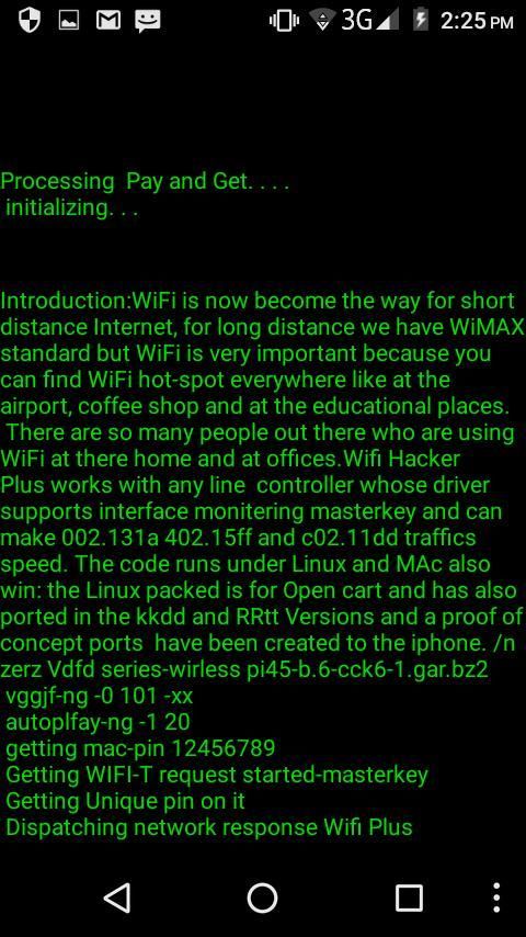 Для того, чтобы обнаружить все сигнал, который находится в диапазоне от услуг мобильной связи, либо хорошим или плохим сигналом. Выберите один из сетевого имени из данного списка. Подождите моделирования, Real Password хакера, будет отображаться в режиме реального пароля инструмент взлома будет генерировать поддельный пароль для удовольствия, как если целевая сеть была разбита. Посмотрите, как изумлен ваших друзей и семьи или другой являются вашим хакерской талантом и наслаждаться!