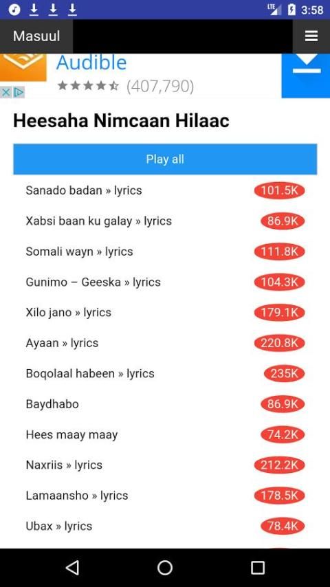 • Поиск и играть в свои любимые песни и сомалийских альбомы тексты песен
