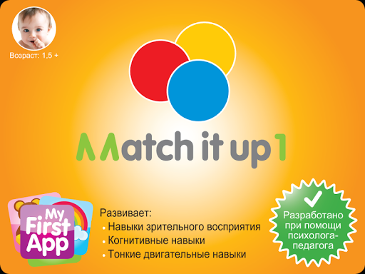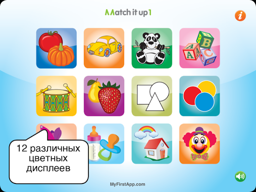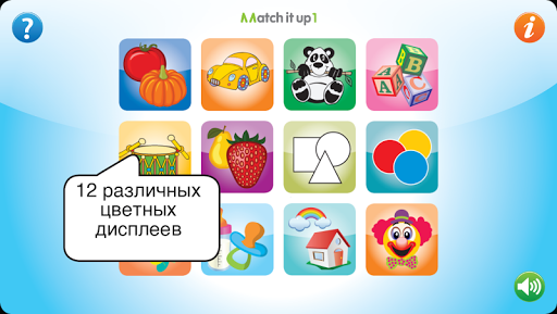 В игре "Match it up 1" сопоставляются идентичные изображения. Она предназначена для детей в возрасте от 1,5 лет.