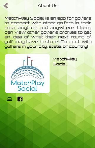 Matchplay Social это приложение для игроков в гольф, чтобы соединиться с другими игроками в гольф в их сообществе в любое время и в любом месте! Вы можете просматривать профили других игроков в гольф заранее, чтобы получить представление о том, что ваш следующий раунд может иметь в магазине. Использование услуг определения местоположения, чтобы найти игроков в гольф и поля для гольфа, ближайший к вам. Вы можете также разместить фотографии на социальной странице большой конечно, большой выстрел, или большой группой друзей!
