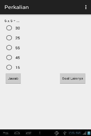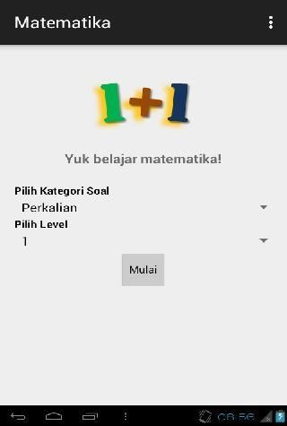 Aplikasi yang menyediakan soal-soal matematika dengan metode pilihan ganda. Soal-soal akan dibuat secara acak dan dinamis sehingga cocok bagi Anda atau putra-putri Anda yang sedang belajar matematika atau sekedar ingin mengasah otak.