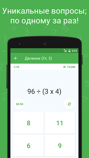 Если вы студент, желающий улучшить свои математические навыки к экзамену, или вы ищите качественную математическую игру для своих детей или для себя, чтобы тренировать мозг и держать его в тонусе, то вы нашли то, что искали. Math Master – это бесплатная математическая игра для всех возрастов! Игра содержит набор заданий на каждый вид арифметических действий. Выберите любую понравившуюся книгу, начните решать и повышайте свой рейтинг. Станьте Математику Мастер, решая задачи!