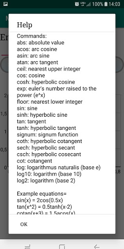 You also can enter a trigonometric, logaritmic, hyperbolic, or algebraic equation, make the plot of it and see where they are exactly equal.