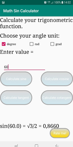 Trigonometric calculator and equations solver (and not only) all in one! It is really useful in any math related classes and calculations. This calculator is a must have for every student!