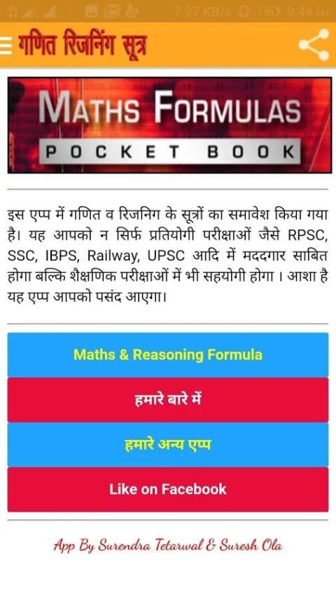 Это приложение является включение математики и источников Rijnig. Это не только конкурсные экзамены RPSC, SSC, IBPS, железная дорога, UPSC и т.д. поможет, но будет помощником в академических экзаменов. Надеюсь, вам понравится это приложение.