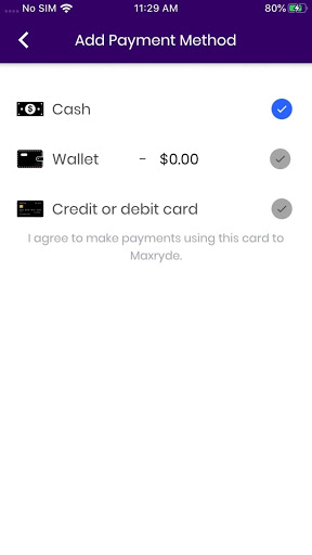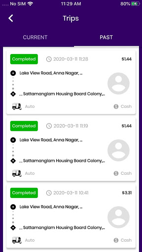 Rider может оплатить их поездку по карте или наличными может отслеживать текущие и прошедшие поездки