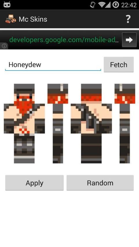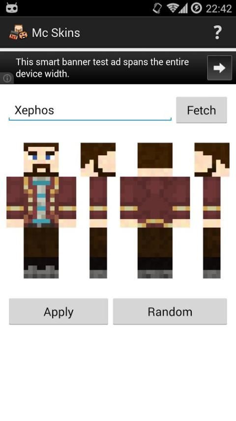 With Mc Skins you can view your current skin or even copy your friend's skin from the comfort of your Android device. To copy a friend's skin, fetch their skin, long touch the preview image and then touch apply skin. If you want to save a skin to your phone, long touch the image preview. This also works if you want to save the preview from a certain rotation. Check out our YouTube channel! http://www.youtube.com/xgamertag1 Can be used for Pocket Edition if you know how to use PocketTool. If not, view the 'Help' section within the app.