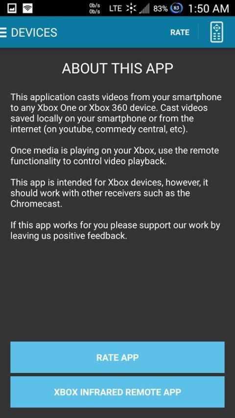 Это приложение предназначено для устройств Xbox, однако, он должен работать с другими приемниками, такими как Chromcast, пожарной палки и т.д.