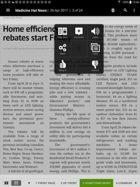 Welcome to Medicine Hat News' newest Android app. -Read publications and stories just as they appear in print -Read full stories in an attention-grabbing, horizontal news stream in text view mode -Listen to stories with on-demand narration -Find stories on your topic with advanced search -Bookmark articles for later reading, reference or sharing