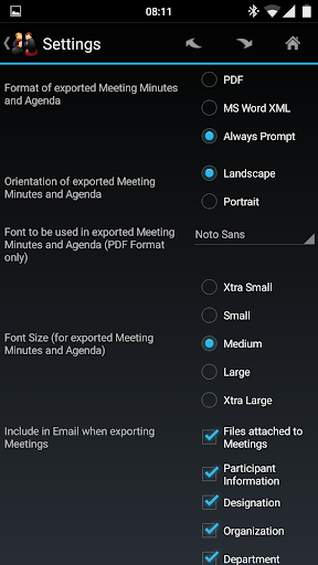 4) Export/Email Meeting Minutes into a professional, simple and clear PDF, MS Word XML or HTML format. Custom Labels feature within settings allows you to generate meeting minutes in multiple languages (please note that all languages might not be supported).