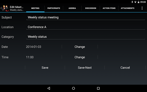 Meeting Minutes is a simple but powerful, user-friendly and intuitive app to Organize, Store and Track Meetings, Participants, Agenda, Discussion and Action Items. It has a simple easy to use UI coupled with rich functionality and features to increase your productivity and make you a pro at organizing, tracking and managing meetings. It supports the following features: