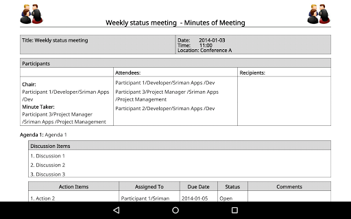 ★★★ Meeting Minutes Trial is now a fully functional 3 day free trial of Meeting Minutes Pro. Hope you will like our app and find it useful. Please support us by buying the Pro version. Please send any comments to support@SrimanApps.com ★★★