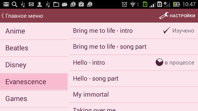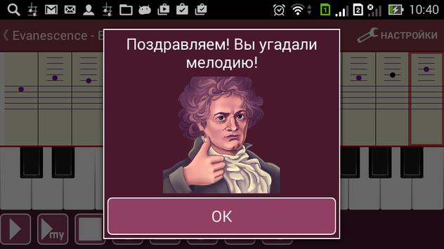 Суть данного приложения проста: слушая фрагменты знакомых мелодий, Вы подбираете их на различных инструментах, совершенствуя свой музыкальный слух. Таким образом, используя “Мелодический диктант”, Вы сможете качественно улучшить собственное восприятие и понимание музыки.