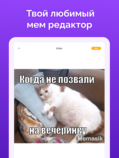 Мемасик - бесплатное приложение-генератор и редактор мемов. Он поможет вам создавать мемы с текстом / стикерами / смайликами и пригласит вас в сообщество мемов, где вы сможете найти сообщения, голоса и обсуждения от лучших создателей мемов 🔥