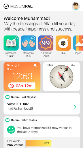 Мусульманский Pal - ваш ежедневный компаньон как приложение. Запомните Коран, 99 имен Аллаха, быстро доступны Qibla Compass и молитвенные времена, и гораздо больше!