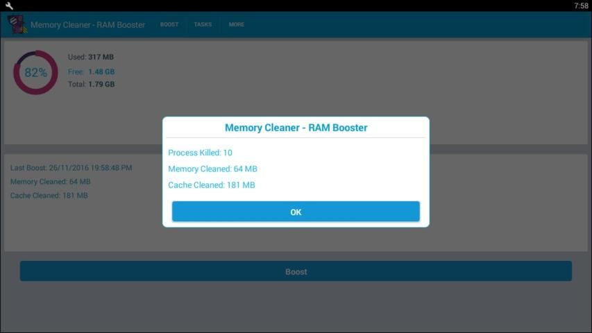 1 - Нажмите Boost, оптимизировать непосредственно с главного экрана.