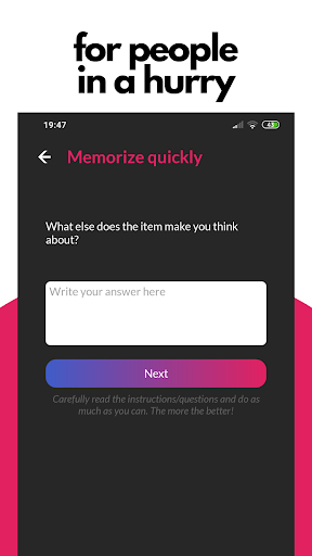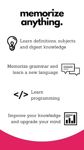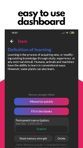 Simply enter your topics and the app will take care of the rest! Use Memory Hacker to memorize your content for both long-term and short-term periods. If you're in a hurry, use the quick memorization option.