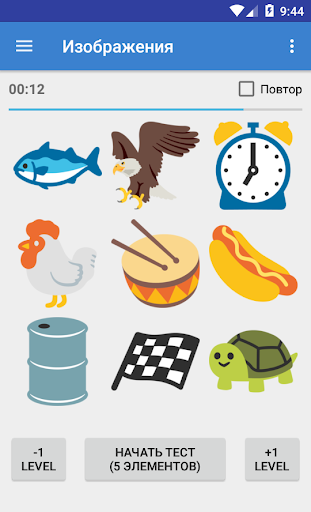 В данном тесте вам необходимо запомнить последовательность элементов, чтобы воспроизвести ее.