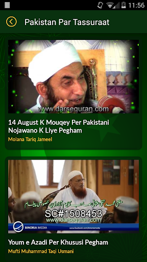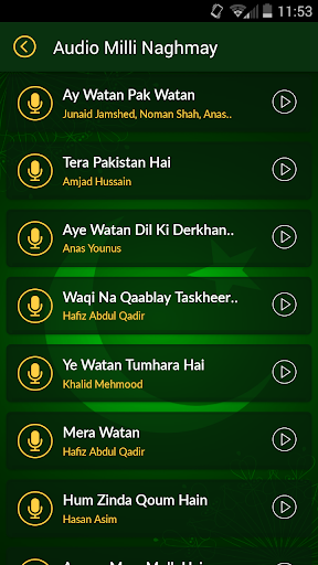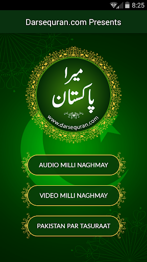 Let's celebrate Independence of Pakistan by listening some of the most popular National songs just on your finger tip. Darsequran.com brings you an amazing app which contains a number of National songs, some patriotic speeches of respectable Ulama-e-Kiraam and views of our honourable personalities regarding Pakistan. So install 'Mera Pakistan' app now and revive your love for the beloved country - Pakistan!
