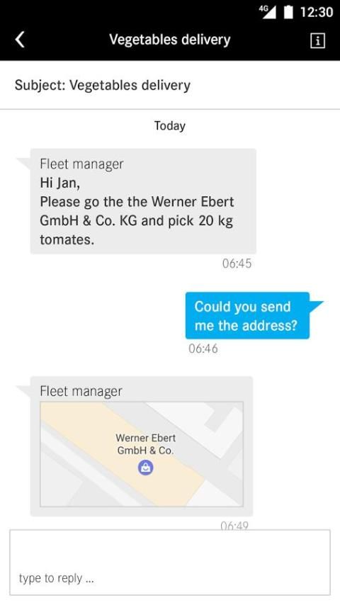 The app makes it easy to transmit messages and addresses for an even more efficient communication between drivers and fleet managers.