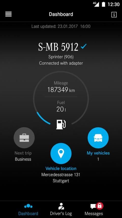 With the Mercedes PRO Adapter app, the driver keeps track of important vehicle information such as fuel level or battery voltage at all times and can access many other functions.