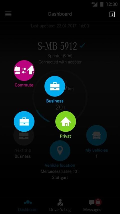 The smartphone automatically records the trips completed, allows the driver to comment on the trips and export the information for other purposes. If the vehicle is used privately, you can quickly and easily switch off the recording function.