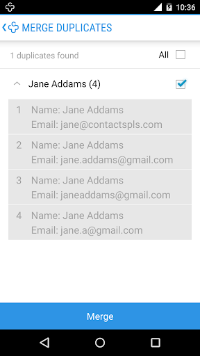 Note: Merge can also be found as an integrated feature in Contacts . Please make sure that you review all duplicates and backup your contacts before activating the merge option.
