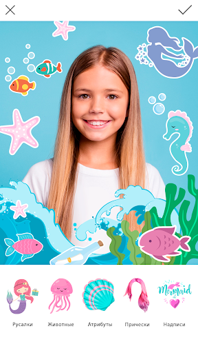 Фоторедактор Русалочка Фото идеально подойдет для всех, кто любит русалочка фото, морские фоторамки для девочек, милые наклейки для фото и фоторамки русалка!