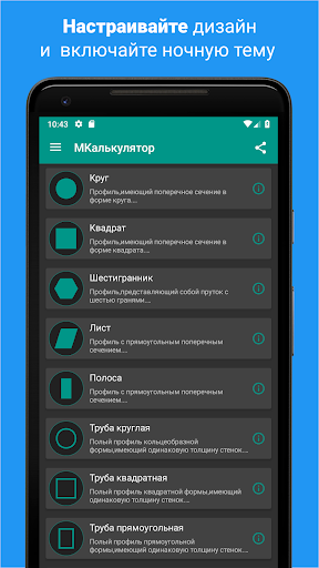 рассчитывает массу изделий из металлопроката зная длину, длину зная массу.